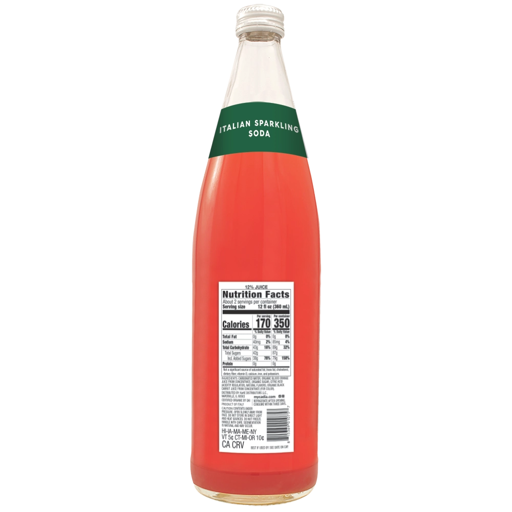 Taste: Prepare your senses for a burst of citrusy goodness with organic Italian blood orange sparkling soda. As you take your first sip, you’ll be greeted by the bright and tangy notes of ripe blood oranges, perfectly balanced with a hint of sweetness. The effervescence dances on your tongue, creating a refreshing sensation that lingers long after each sip. The natural flavors in this soda are like a symphony for your taste buds, offering a delightful combination of zesty zest and subtle sweetness. Each bubble bursts with the essence of freshly picked Italian blood oranges, delivering an authentic and invigorating experience with every sip. Whether enjoyed on its own or paired with your favorite dish, organic Italian blood orange sparkling soda is sure to elevate any moment with its vibrant taste profile. Get ready to savor the unique blend of flavors that make this beverage a true standout in the world of sodas. Made: The pure quality organic flavor you can only get from only real ingredients. You’ll notice the difference — a true treasure in our line-up of pure foods. Passion: CADIA® organic foods are fresh and flavorful. Made from premium ingredients, sourced from around the world. Organic fruits harvested by hand at their peak of ripeness infuse our Organic Sparkling Italian Sodas with lively exquisite flavors. Sweet organic blood oranges, kissed by the Mediterranean sun and hand-harvested, are what make this Blood Orange Sparkling Italian Soda a deliciously thirst-quenching sensation. One of the distinctive features of this organic soda is its natural ingredients – no artificial flavors or colors are added! This means that every sip delivers an authentic blood orange flavor without any chemical aftertaste. Uses: Looking for a versatile beverage that can be enjoyed in various ways? Organic Italian blood orange sparkling soda is not only delicious on its own but also incredibly versatile in its uses. Whether you’re hosting a fancy dinner party or just looking to mix up your daily hydration routine, this sparkling soda is the perfect choice. It serves as an excellent mixer for cocktails, adding a refreshing citrus twist to classic drinks like spritzers and margaritas. Additionally, this organic soda can be used as a base for homemade sorbets and granitas, providing a unique flavor profile that will impress your guests. For those who prefer non-alcoholic options, it can also be mixed with fresh fruit juices or blended into smoothies for a burst of tangy sweetness. The possibilities are endless when it comes to incorporating organic Italian blood orange sparkling soda into your culinary creations. Let your imagination run wild and experiment with different combinations to discover new and exciting ways to enjoy this delightful beverage. History: Step back in time and discover the intriguing history behind organic Italian blood orange sparkling soda. Originating from the sun-kissed groves of Sicily, where the rich volcanic soil nurtures these vibrant citrus fruits, this beverage embodies centuries-old traditions. The story begins with ancient Mediterranean civilizations cultivating blood oranges for their unique flavor and health benefits. Over time, Italian artisans perfected the art of extracting the zesty essence from these crimson gems to create a refreshing drink that captivated taste buds far and wide. As trade routes expanded, so did the popularity of this effervescent elixir. Its exotic allure made it a prized commodity among nobility and commoners alike, earning its place as a symbol of Italian gastronomy. Today, organic Italian blood orange sparkling soda continues to enchant consumers with its fusion of history, craftsmanship, and natural goodness – a testament to its timeless appeal. Testimonial: “I love that this delicious soda is made with organic ingredients and that gives me the comfort of knowing where the ingredients come from and I can enjoy it guilt-free!” – Emily R.