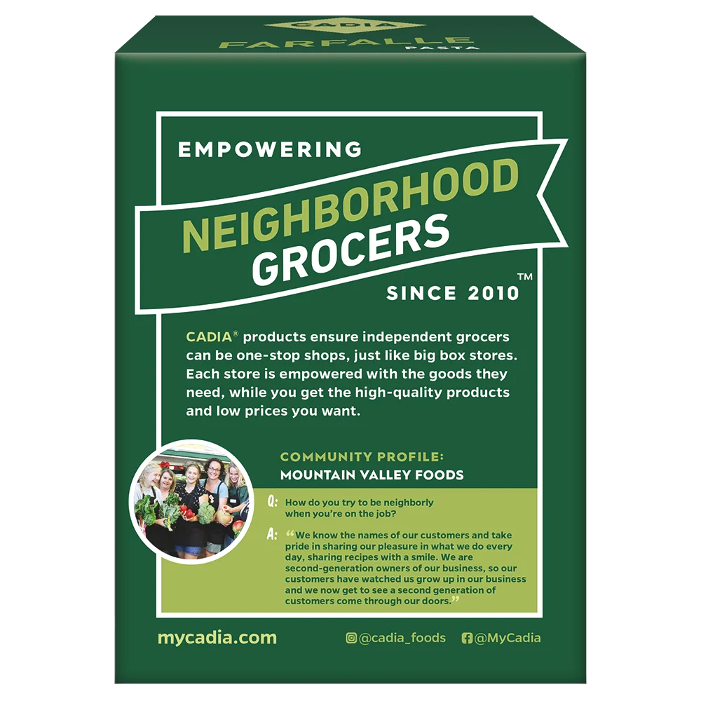 When you steer your cart into the neighborhood grocer, your shopping trip has the power to shape your community. Since 2010, CADIA® has offered products exclusively to independently-owned grocers to ensure they can compete with the big box down the street. Grocers are empowered with the goods they need, while you get the high-quality products and low prices you want. From lentils to laundry detergent, the goodness that goes into your basket can now flow right back into your hometown.