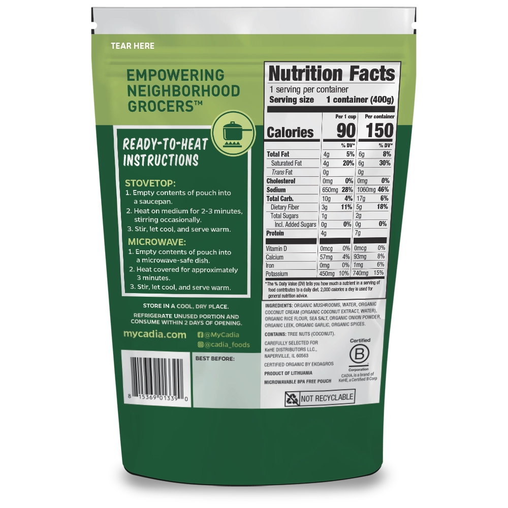 CADIA® organic foods are fresh and flavorful. Made from premium ingredients, sourced from around the world. Made with all organic ingredients – mushrooms, water, coconut cream, rice flour & spices.